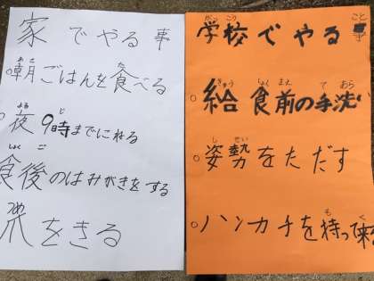 保健委員会からは、月末からの元気アップ週間に向けて、健康を保つために「家でやること」「学校でやること」の話をしてくれました。