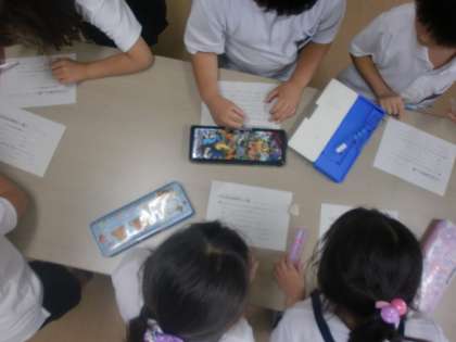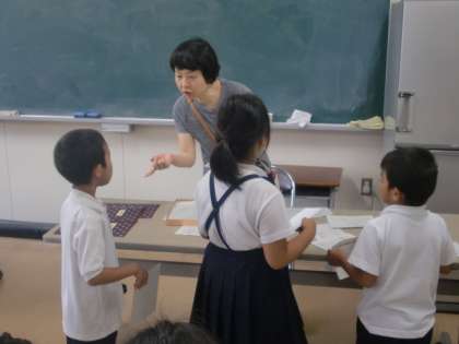 昼休みになると、子どもたちが進んで検定を受けに来ています。さあ、何級まで合格できるかな?