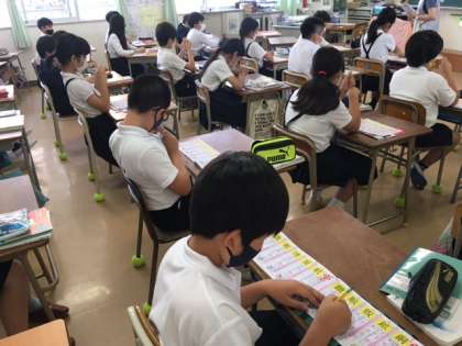 どの学年も漢字ドリルや書き方ドリルを使って、漢字やひらがなを学習しています。