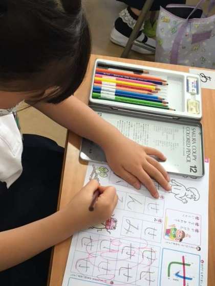 書き順も大事です。みんなで一緒に書き順を確認しています。