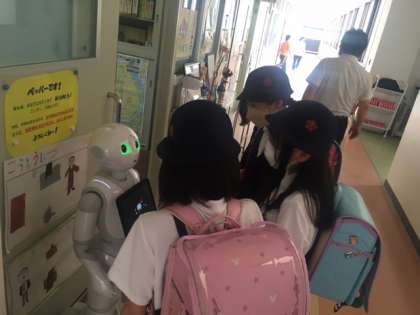 子どもたちが帰りにペッパーさんと楽しそうに話をしています。