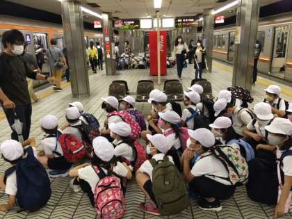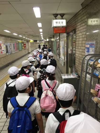 今日は、3年生の校外学習です。鶴見緑地公園に行きます。