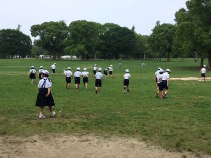 広い芝生でオニゴ、バッタ取り、色々です。