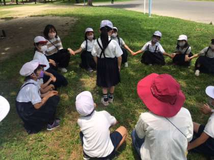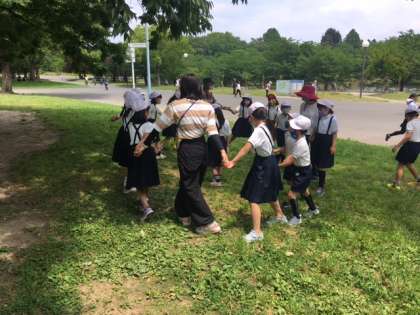 だんだんと本格的な「かごめかごめ」になってきました。昭和の遊びですが、みんな知ってます!