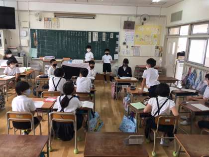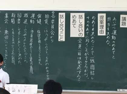 今日の6時間めは、委員会活動の時間です。月に一度、4〜6年生の委員さんが各委員会に集まって、月々の活動について相談したり、決めたりします。