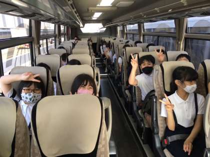 バスの中では、これからの楽しい修学旅行への期待でワクワクムードです。