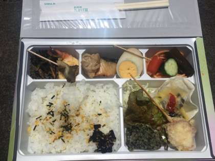 菅島名物のお弁当をいただきます。中身はアレルギー個別対応もしてくれています。