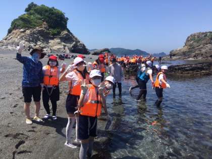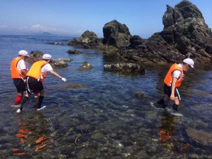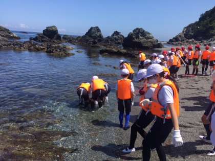 磯観察が始まりました。海の水はとっても冷たいですが、快晴の中、気持ちがいいです。