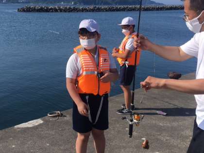 エサの生きエビを触るのがコワイ〜、キャ〜の声が轟きまくってますが、その横ではどんどん釣れています!