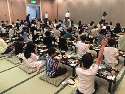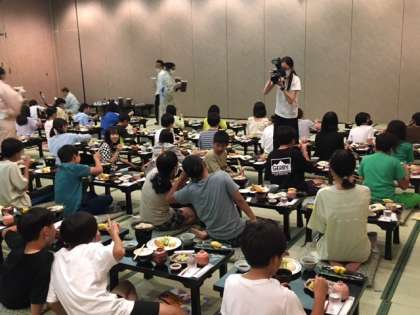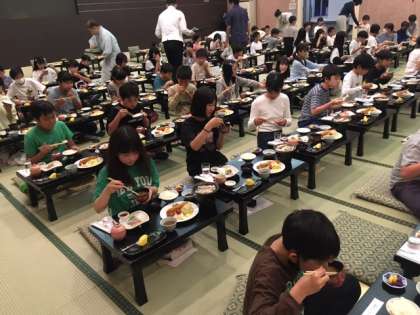 美味しい食事でワイワイできないのは残念ですが、みんな楽しそうに食べています。