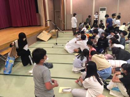 レクリエーション大会の開幕前、騒然とした興奮状態です。いよいよ始まる本番に、湧き上がってます!