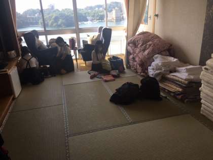 ホテルの方に入れていただいたお茶を持って各部屋に戻って、出発準備をします。