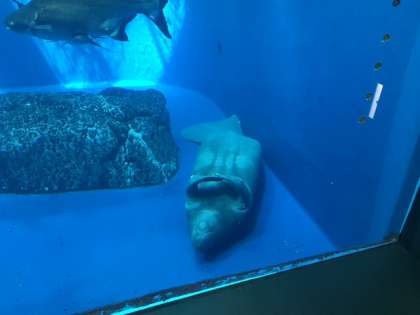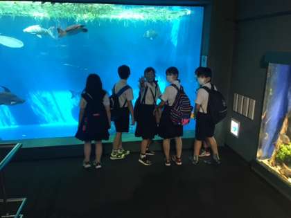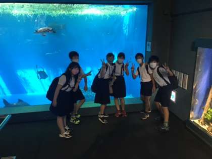 活動をスタートして、すぐに班員みんなで凝視しているので、見てみると、マナティーが水底で仰向けになっていました!