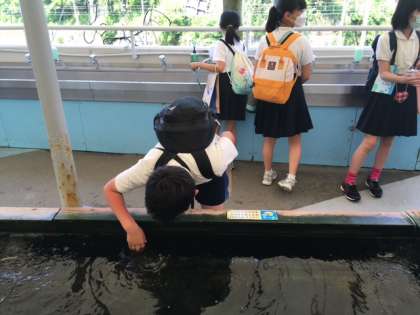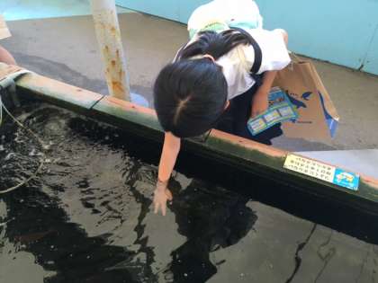 海の生物たちにじかに触れるコーナーがありました。ワーワーキャ〜キャ〜言いながら、ちょっと触ってました!