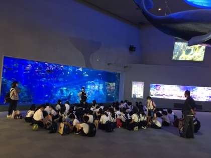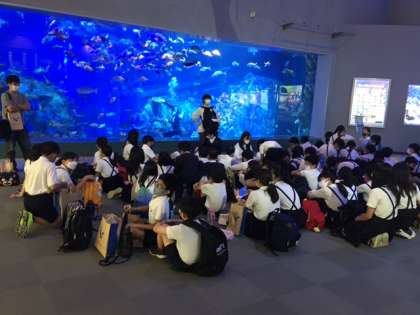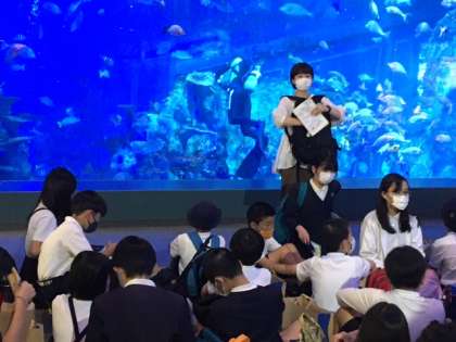 大水槽では、ここでも飼育員ダイバーさんが掃除をしていました。
