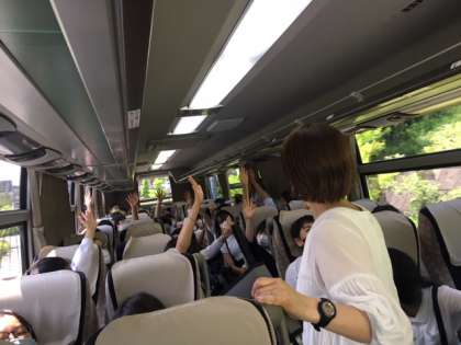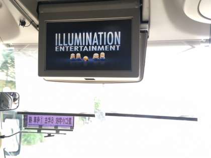 大阪まではDVD鑑賞です。バスに載せられてた ドラえもん、クレヨンしんちゃん、ミニオンズ、ワンピースの中から、恨みっこなしの挙手で決めます。ダントツでミニオンズでした。理由はわかりませんが、公平な選択方法なので、みんな納得です。