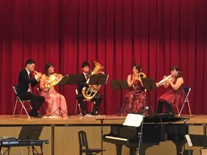 まずは1・2年生のプログラムです。金管五重奏、オペラ歌手の歌声、管弦楽器の演奏を聴いたあと、いろんなリコーダーの紹介と演奏を聴きました。