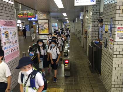 天満駅を整然と出て、来た道を学校に戻りました。全員、無事、帰着しました。
