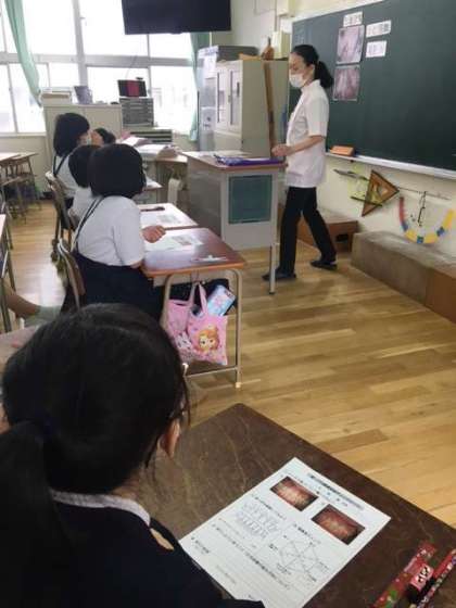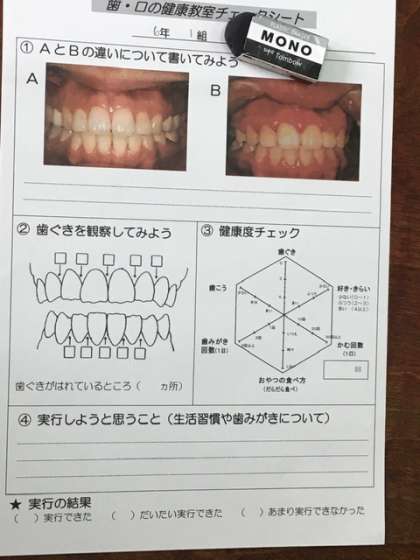 6年生では、今日、歯科衛生士さんにお越しいただき「歯と口の健康教室」を行いました。