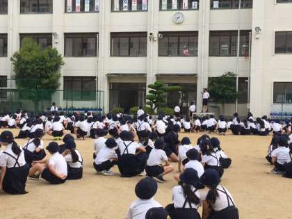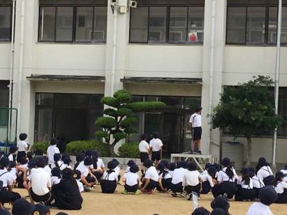 今日は木曜日、児童集会の日です。集会委員さんがゲームをしてくれます。