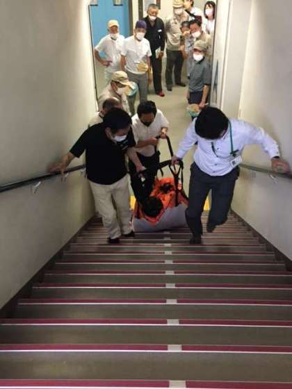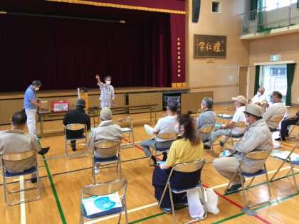 子どもたちが下校した後は、区役所の方々と地域の防災リーダーさん、PTAの方々とで防災についての研修会を行いました。