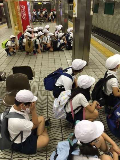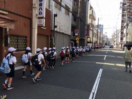 今日は、4年生の校外学習です。これから万博記念公園に向かいます。
