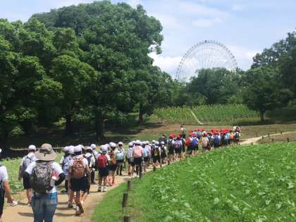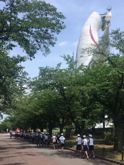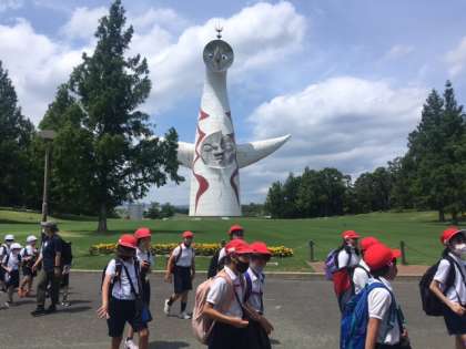 いっぱい学んで、いっぱい遊んだ万博記念公園にサヨナラして、これから向かいます。学校に
