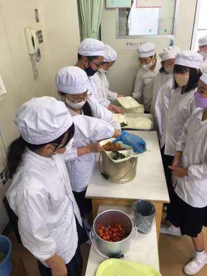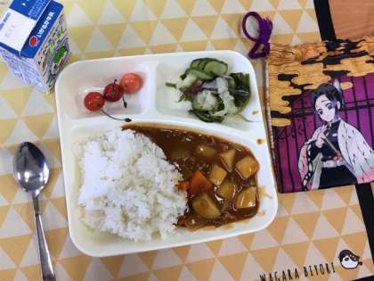 今日の給食献立は、ハヤシライス・ミックス海藻のサラダ・さくらんぼ・牛乳です。