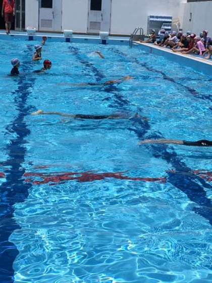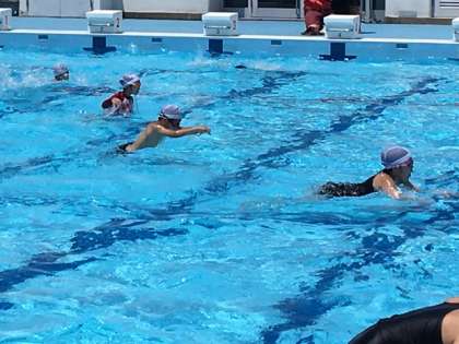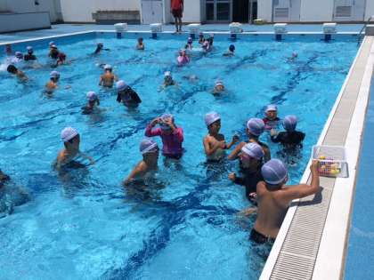 午前中、1年生の後は2年生の水泳授業です。2年生ともなると、泳げます!