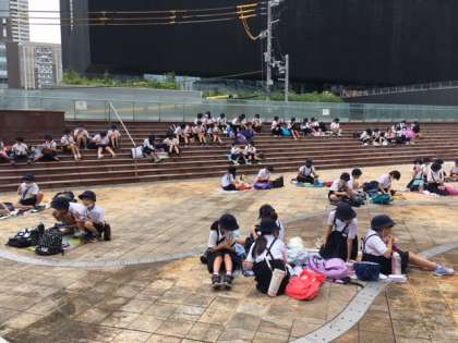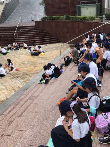 雨も上がって、涼しい風が吹いています。広いところでゆったりお弁当タイム、いい感じです。