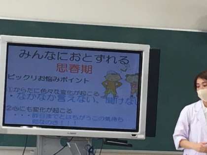 身体の成長に伴っておきる生理的な成長と、心理面の成長について、保健室の先生からお話をしてもらいました。