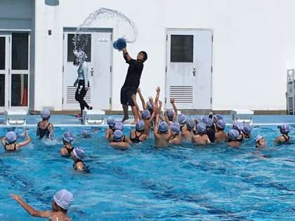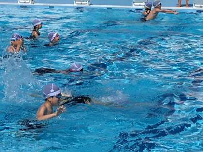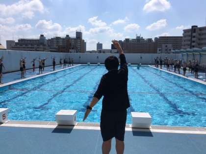 午後からは暑さ指数がピークになるので、午前中に水泳の授業を行います。