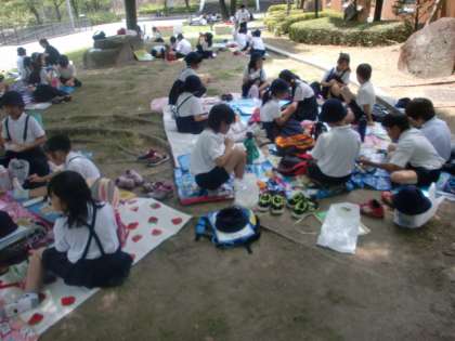 (下)茶臼山でお弁当を食べました。