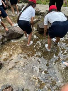 魚つかみは、上級コース、中級コース、初級コースとわかれてアマゴという魚をつかみます。逃げ回る魚をとったときにとったぞー、という声があちこちで聞こえました。全員つかまえることができました。後で美味しくいただきます。
