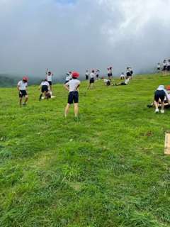 魚つかみ、焼き板づくりの次は高原遊びです。段ボールで滑ったり、転がったり走り回ったりと都会でできないことをみんな楽しんでやってます。林間学習の醍醐味です。