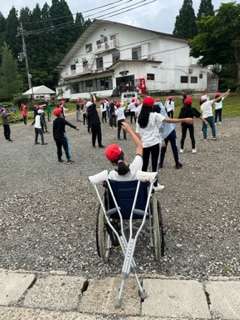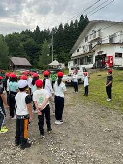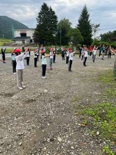 おはようございます。朝の集いがおこなわれました。最初は、教頭先生からお話があり、その後ラジオ体操をしました。二日目のスタートです。この後、朝食です。