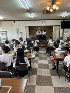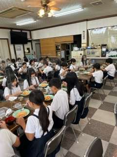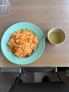林間学習最後の昼食のメニューは、チキンライスとおすましです。活動した後なのでみんな黙々と食べています。とっても美味しいです。