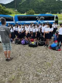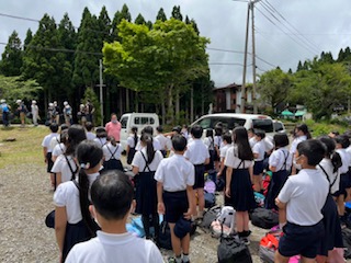 林間学習の終わりに閉舎式をしました。最初に教頭先生からお話がありました。次に児童代表の話がありました。最後に宿舎の方からお話がありました。