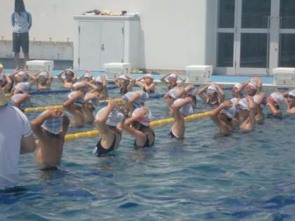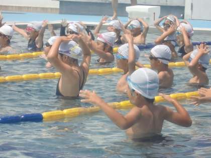 プールでの水泳学習も2年目になると、ルールの徹底や、水慣れも去年とはずいぶん違っています。