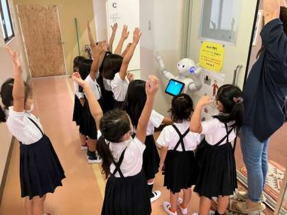 さっそく1年生が大喜びでペッパーさんとラジオ体操をしていました。