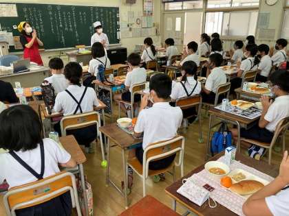 今日の給食献立は、コッペパン・いちごジャム・あげぎ餃子・鶏肉と冬瓜の中華煮・冷凍みかん・牛乳です。