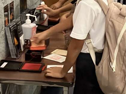 時間はたっぷりあるので、スタンプラリーをする班もあります。学校お母さんにおみやげ!」と。