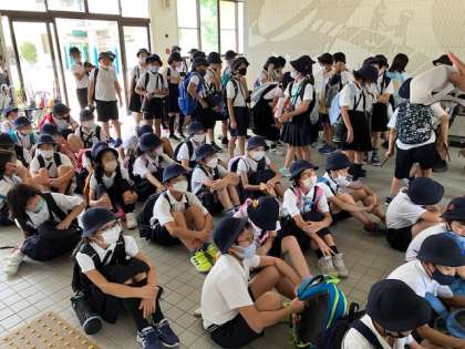 無事、学校に帰着しました。 教室に帰って、休憩してからお弁当です!