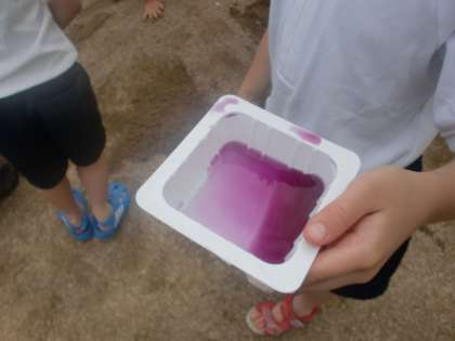 あさがおの花から色水を作りました。