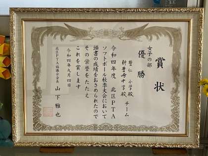 先日行われた「北区PTAソフトボール秋季大会」において、女子の部で豊仁小学校と新豊崎中学校の合同チームが優勝しました。