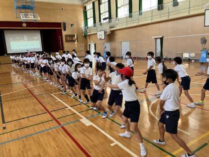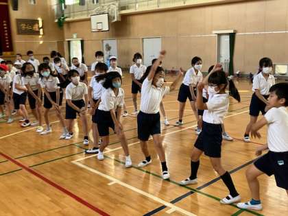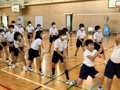 4年生の演技の中に、ウェーブがあります。何度も練習するうちに、だんだんとウェーブらしくなってきて、ポーズも決まり始めました!
