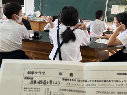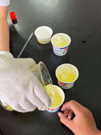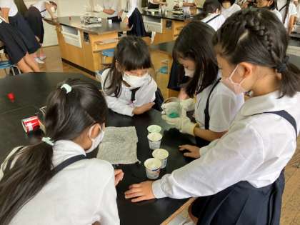 今日は水曜日、クラブ活動の日です。科学クラブでは、尿素の結晶づくりに取り組みます。色鮮やかな尿素を熱っして冷ましていくときれいな結晶ができます。できあがりは来週のお楽しみ!