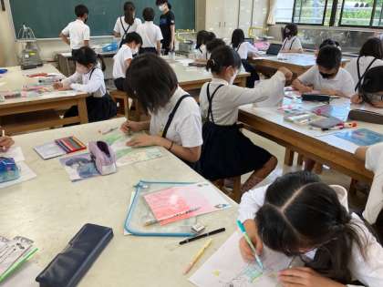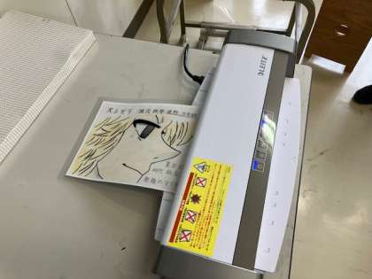 マンガクラブは、前回からの取り組みの下敷き制作です。それぞれが丁寧かつ個性的なマンガを色付きで描いています。絵ができた子からラミネートします。世界に一つだけの下敷きの完成です!