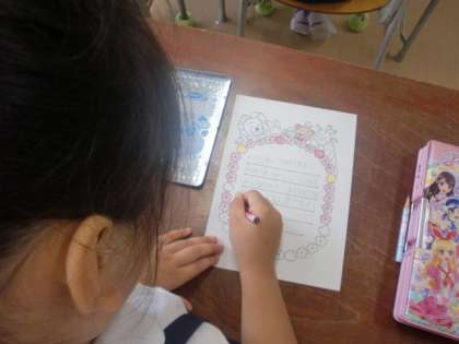 生活科の「ぐんぐんのびろ」で、野菜について詳しく教えてくださった佐藤あづさ先生にお礼の手紙を書きました。