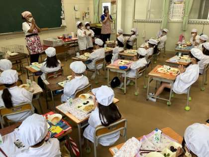 今日の給食献立は、黒糖パン(2分の1)・焼きそば・オクラの甘酢あえ・ぶどう(巨峰)・牛乳です。